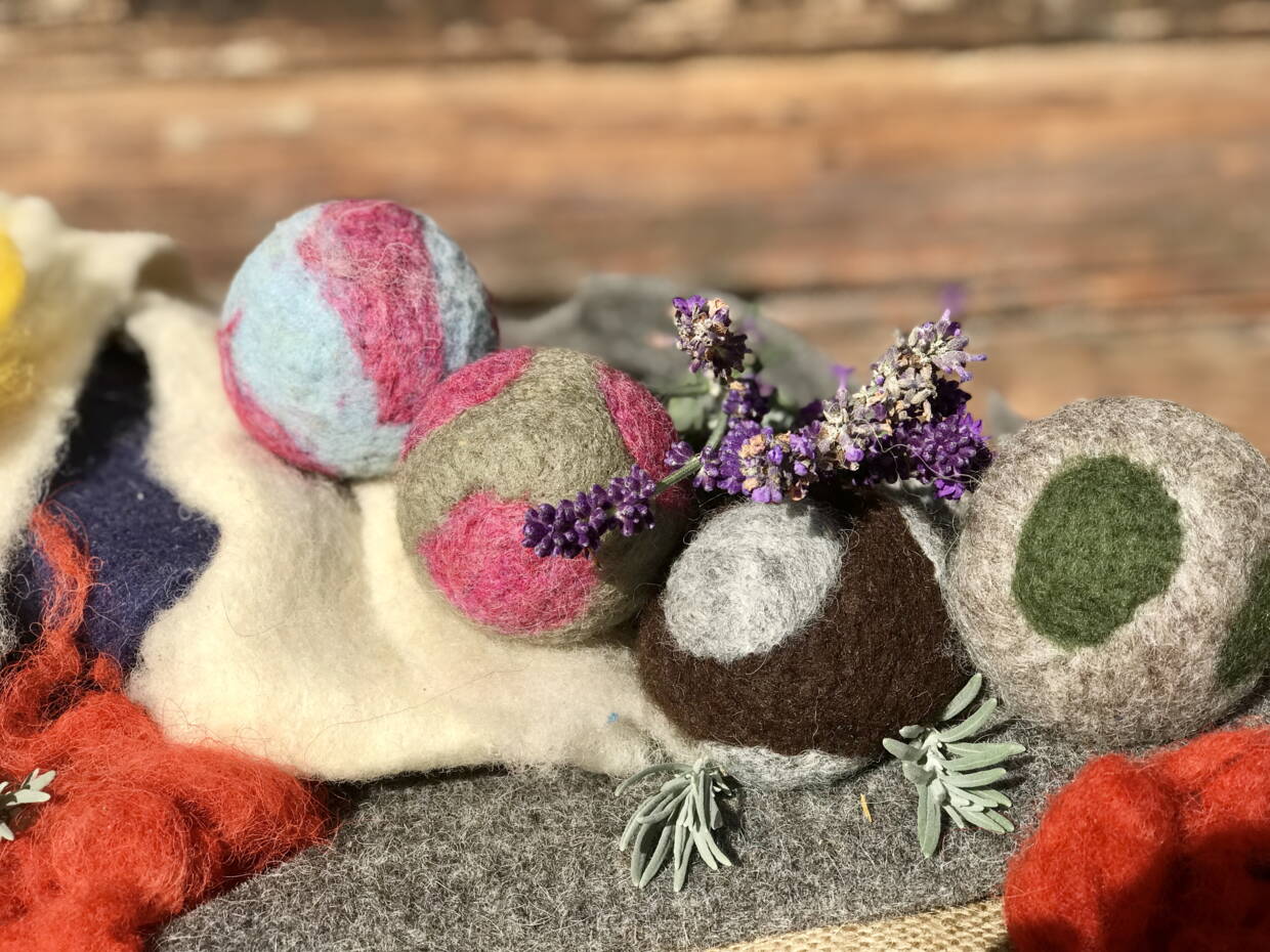 In unseren handgefilzten, kuschelig bunten Katzenspielbällen wurden duftende, getrocknete Schweizer Bio Berglavendelblüten mit eingearbeitet.