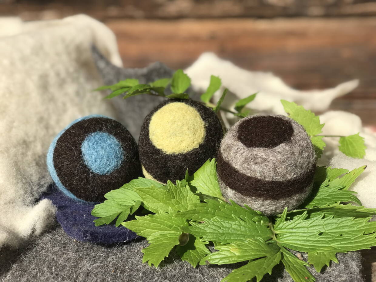 Mit diesen kuschelig bunten, handgefilzten Bällen kann so richtig Gas gegeben werden, bis er im hohen Bogen durch die Luft fliegt oder im Sprung erbeutet wird.